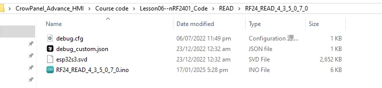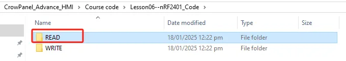 The READ folder is the code responsible for receiving information for each CrowPanel ESP32 Advance HMI size;