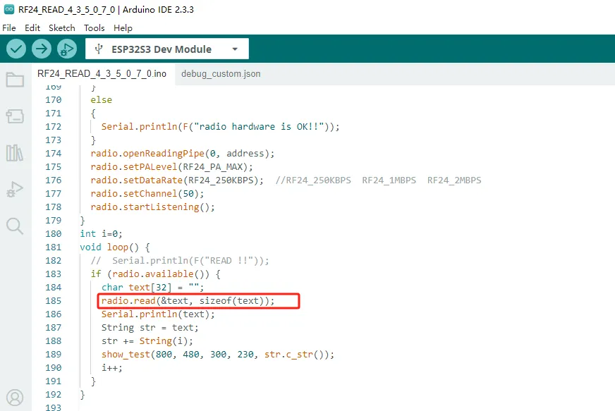 So it is necessary to upload the code to the CrowPanel ESP32 Advance HMI before inserting the nRF2401 wireless module into the W-M slot for use.