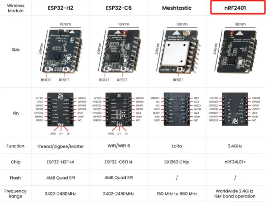ESP32-H2 and ESP32-C6 are predominantly utilized for Zigbee and Wi-Fi communication. Meshtastic, on the other hand, is mainly employed for LoRa communication.