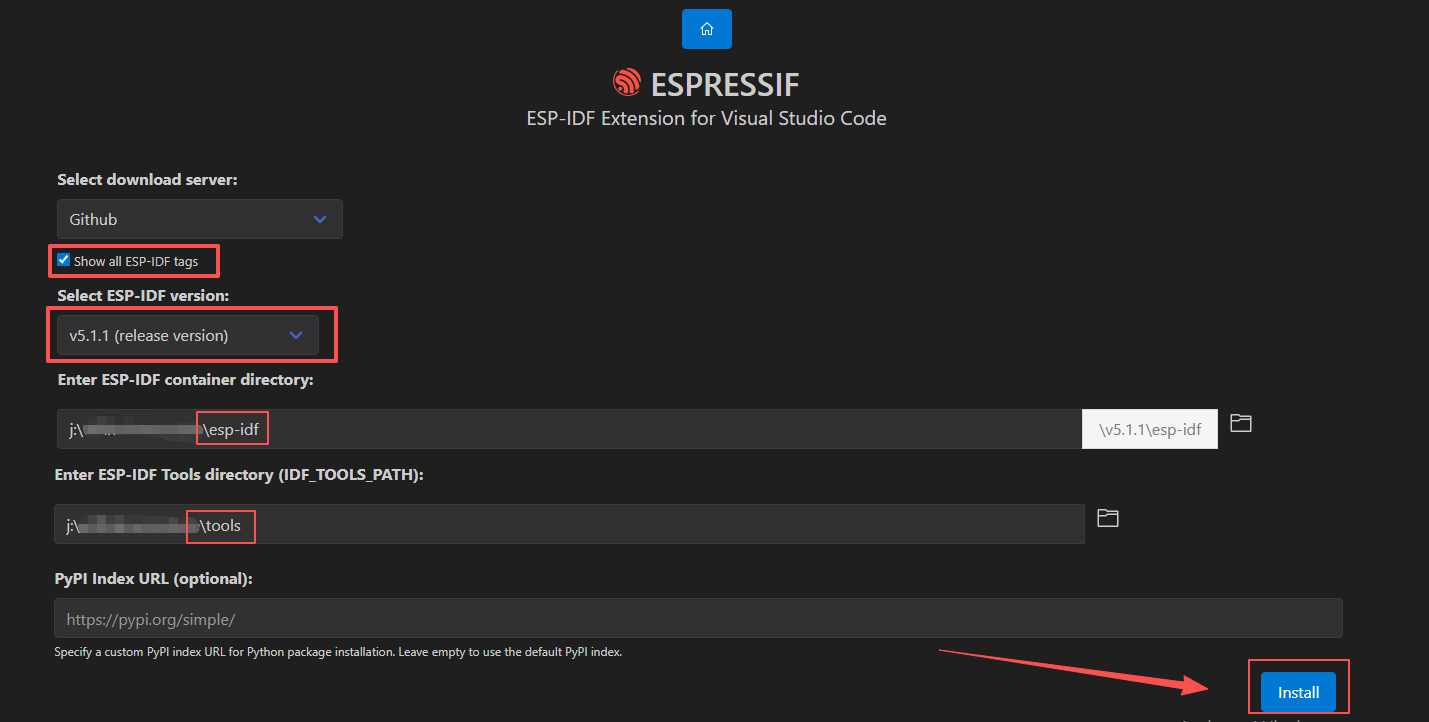 Click [Install] for the esp-idf extension.
