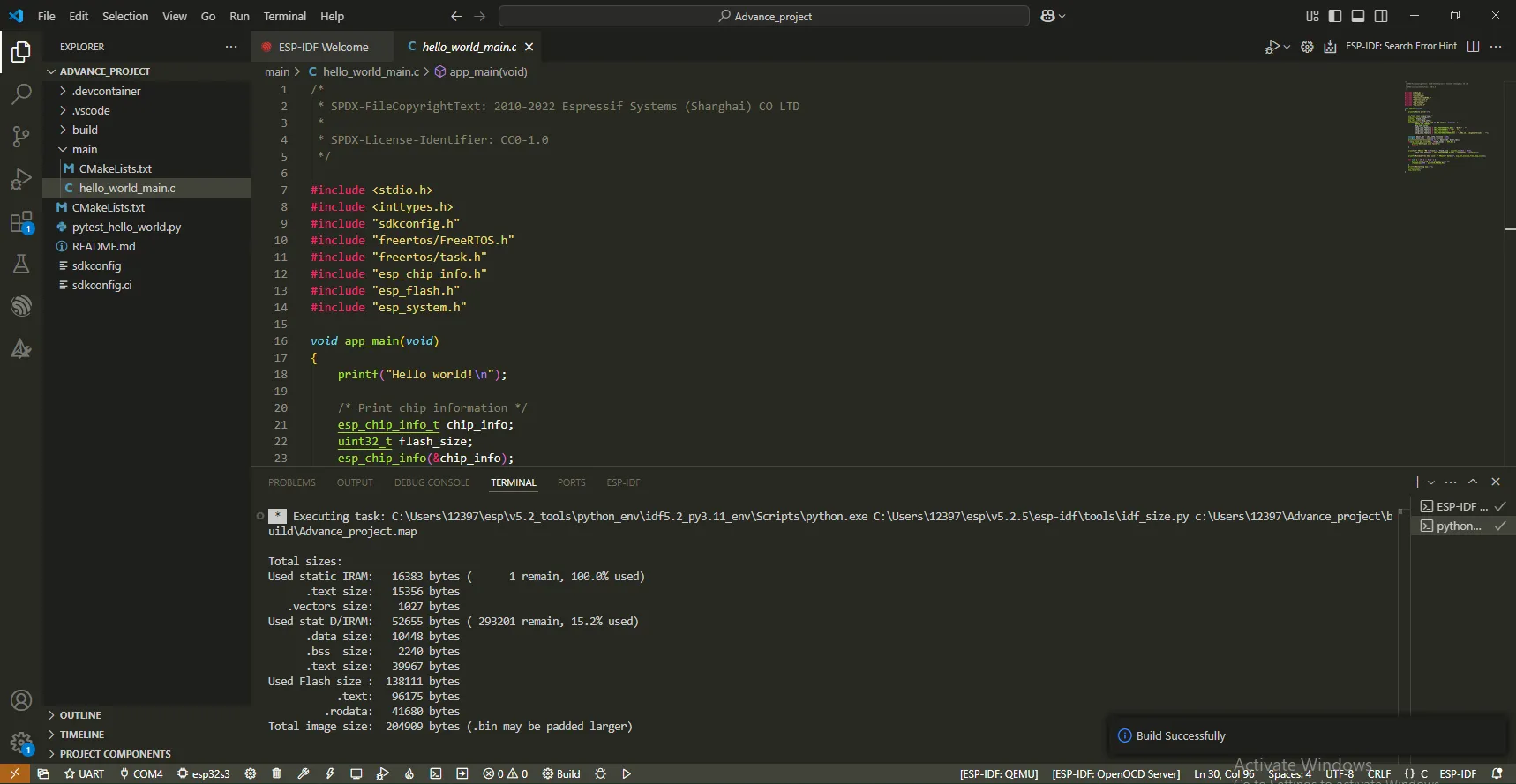 Click”Create project using template hello_world”
