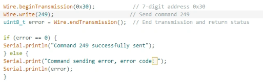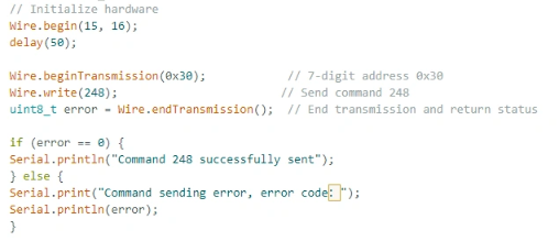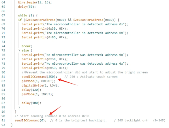 sendI2CCommand(0) means sending command 0 to the microcontroller (address 0x30) to instruct it to set the screen brightness to maximum.