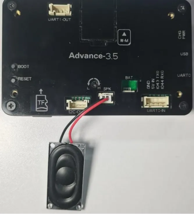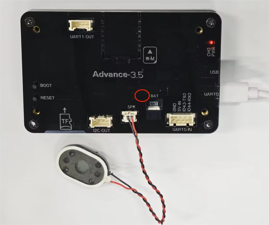 Note:Plug a speaker into the "SPK" interface,Connect the development board to the computer with a Type-C cable.