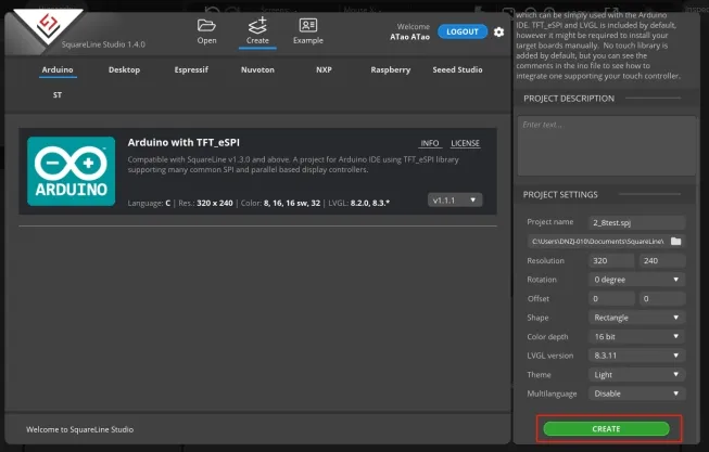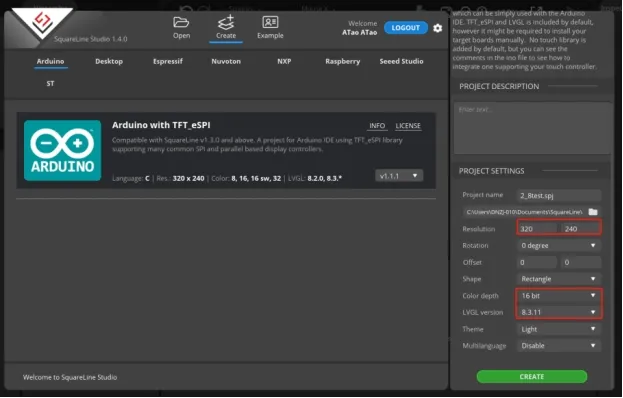 When select the Arduino framwork, there's only one option "Arduino with TFT_eSPI". By choosing this, the squareline studio will generate a template code suitable for the TFT_eSPI library. However, squareline studio not only supports the TFT_eSPI library, it supports a variety of libraries to suit different hardware and application needs. For example, Adafruit_GFX library, LovyanGFX etc.