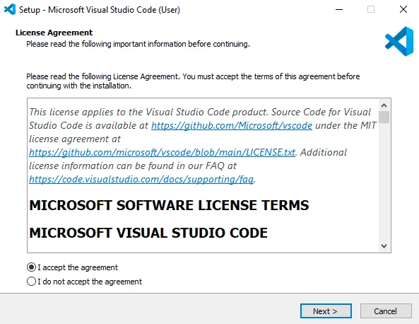 Double-click the VSCodeUserSetup file to install the Visual Studio Code.