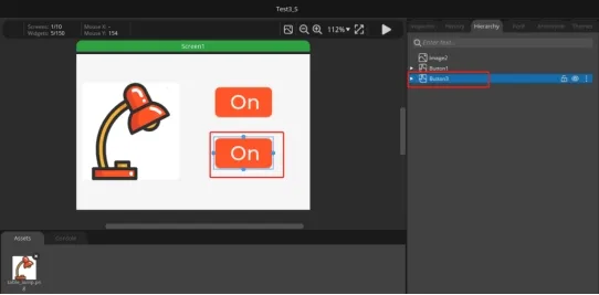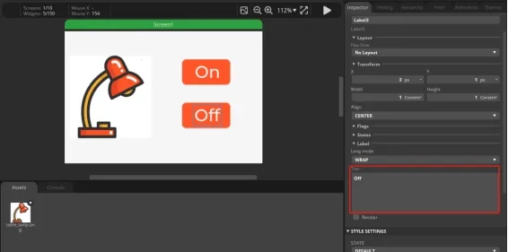Click the second button ON to change the text content to Off. Used to achieve the effect of turning off lights.