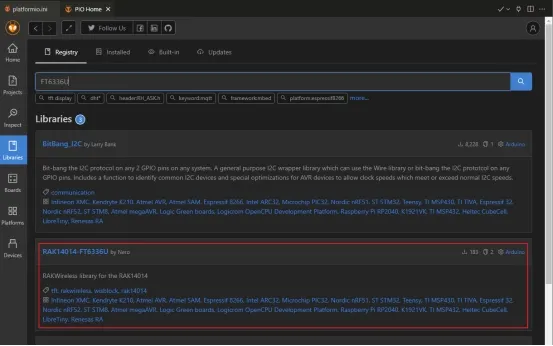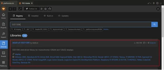 Click the PlatformIO icon, click ‘Libraries’, then search for the following libraries.