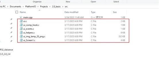Copy the.c file in the UI file to the src folder of the PlatformIO project.