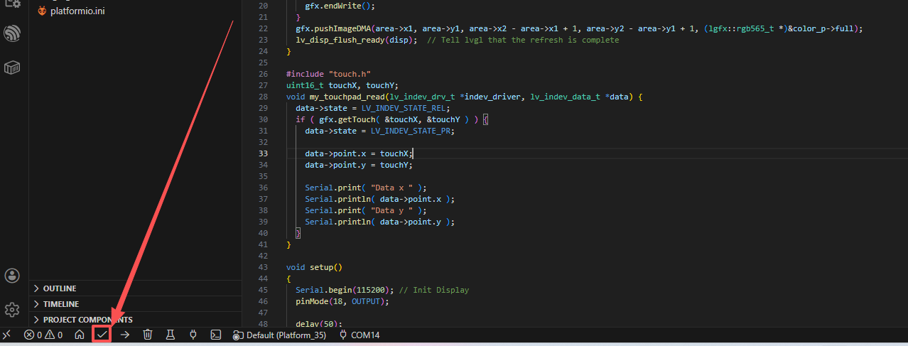 6.6 Burn the well-written PlatformIO project into the CrowPanel Advance ESP32 AI display¶