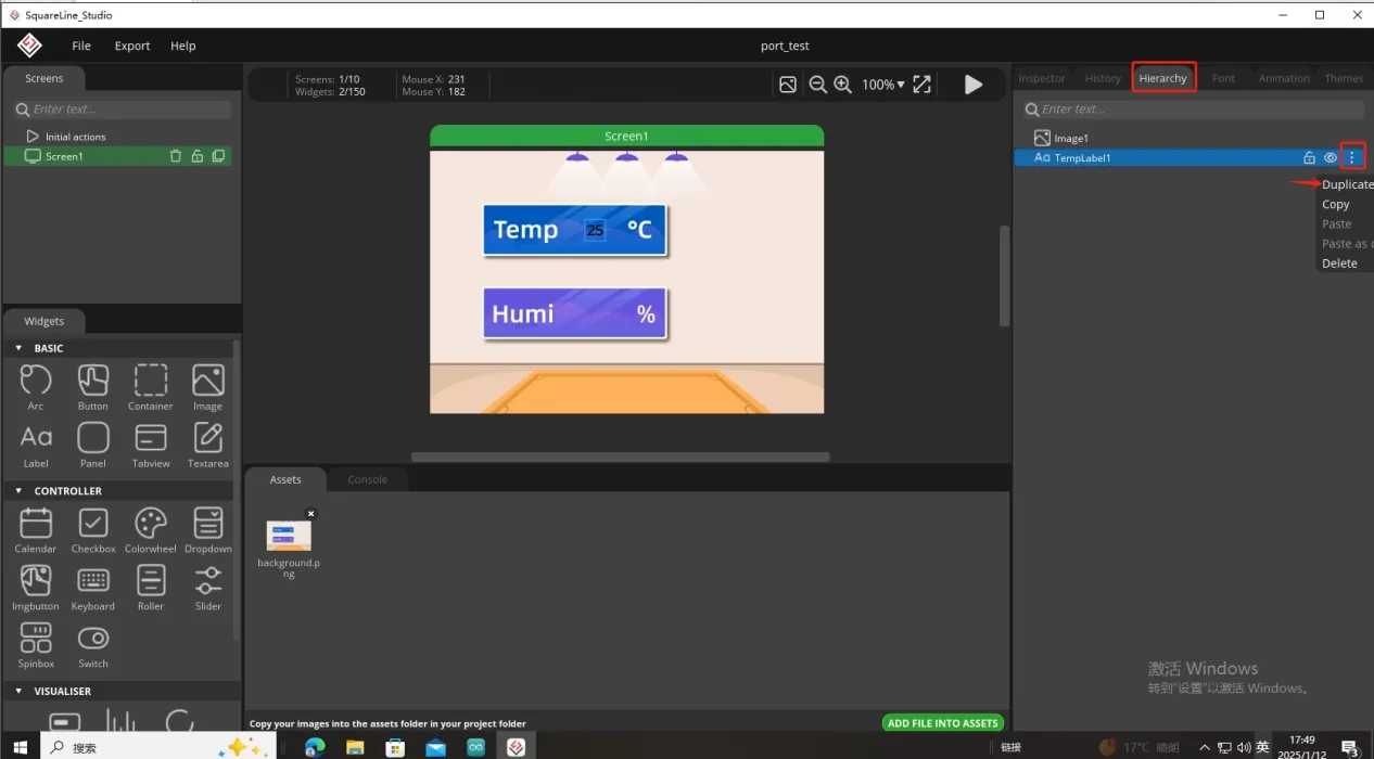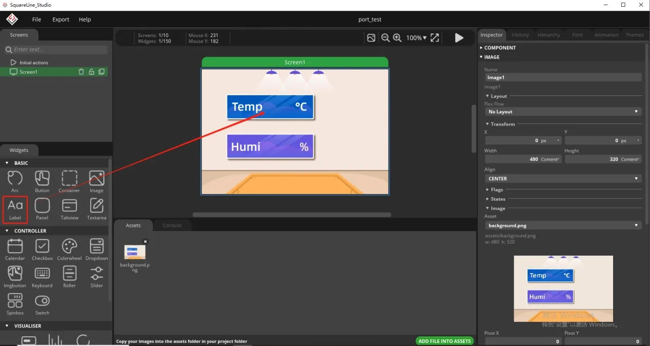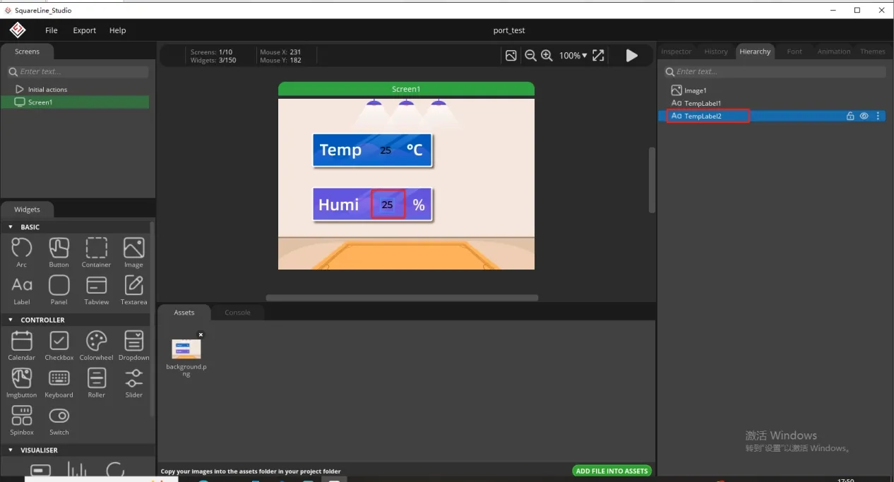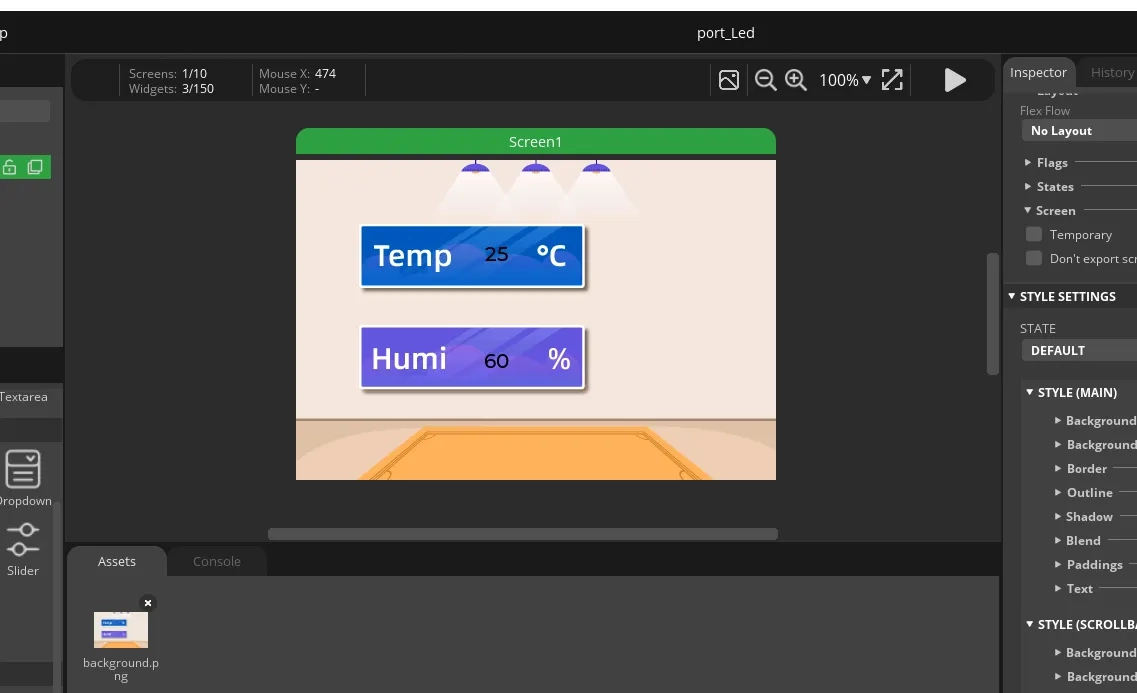Since we need to display the temperature and humidity values on the screen, we need to add text in the two boxes for temperature and humidity.