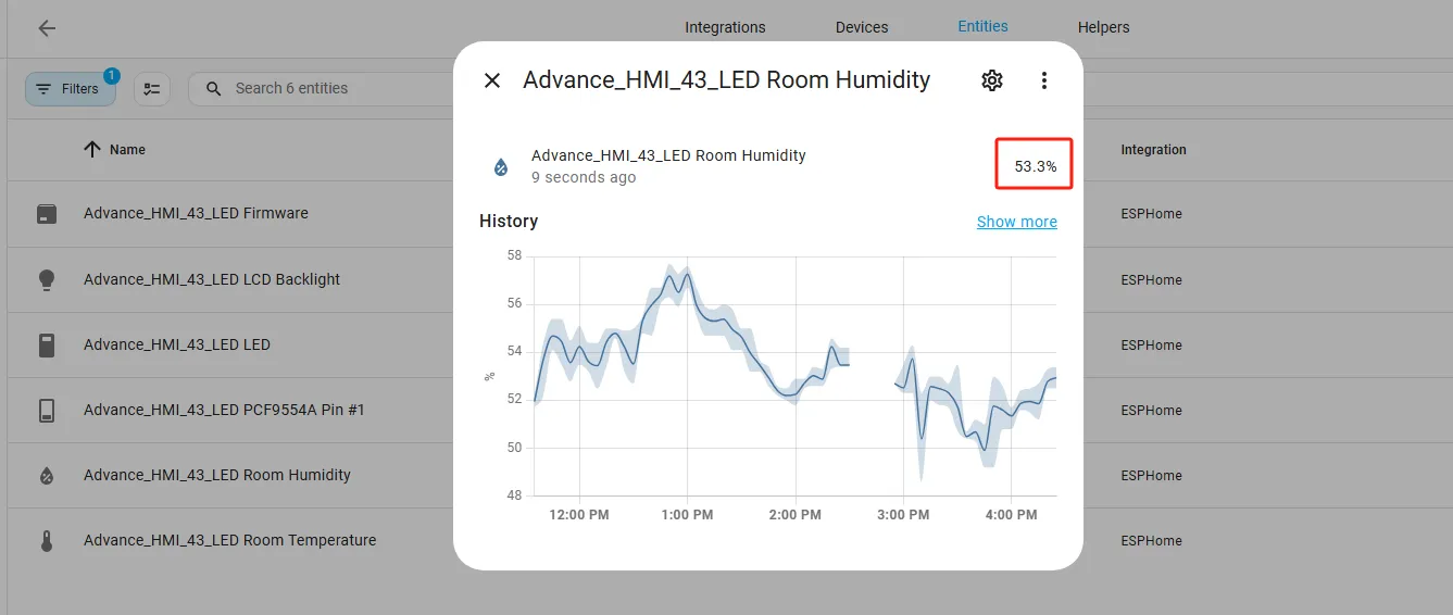You can also view the historical temperature and humidity data collected in the ESPHome backend.