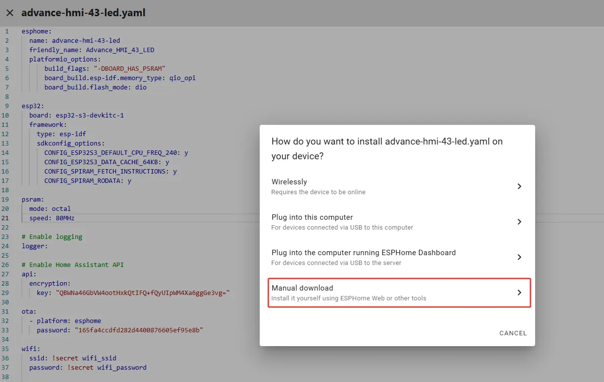 You can see the materials on the screen, which we need to use on the ESPHome platform, so they need to be uploaded to the ESPHome platform.