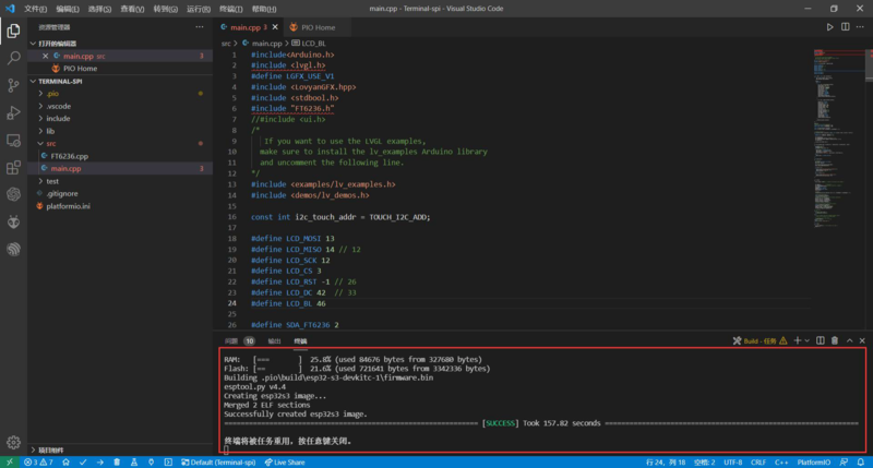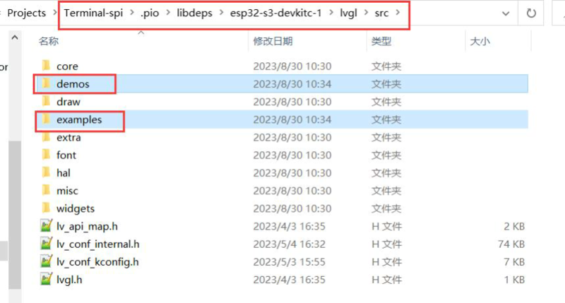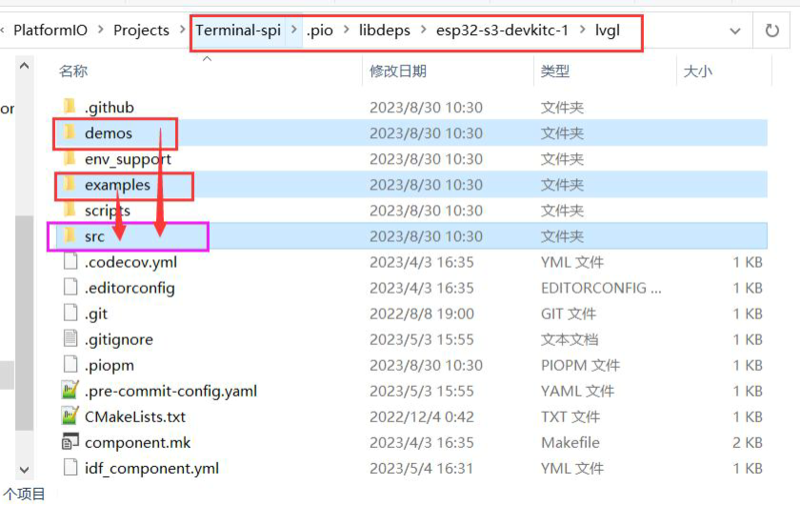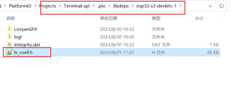 Place the lv_conf.h file under the esp32-s3-devkit-1 directory ![]()