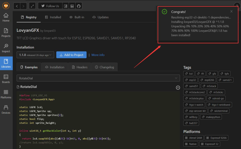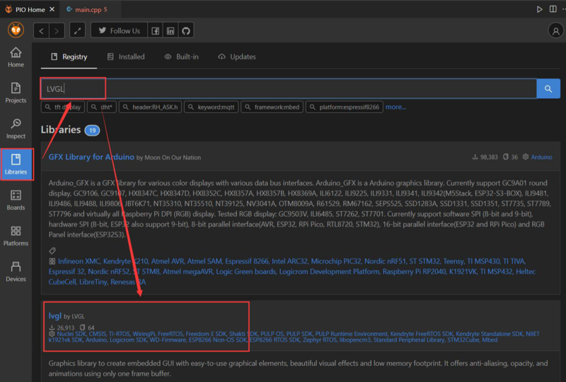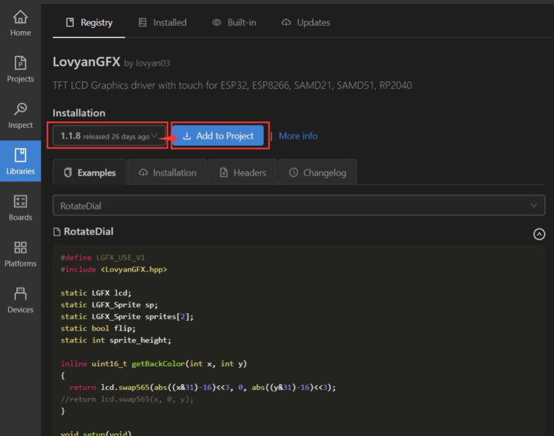 Download the lvgl and LovyanGFX library ![]()