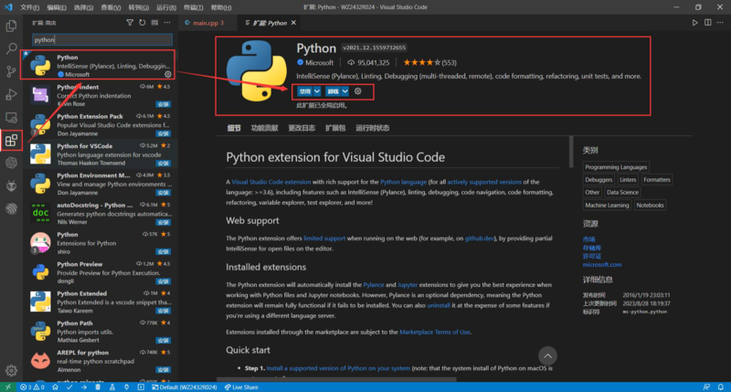 Open VSCode and click on Extension, search for Python and install. ![]()